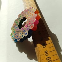 This fabulous brooch is made from forty eight different colouring pencils forming an striking artist colour wheel. We use factory rejected pencils that are then cut, shaped and finished by hand in our studio.